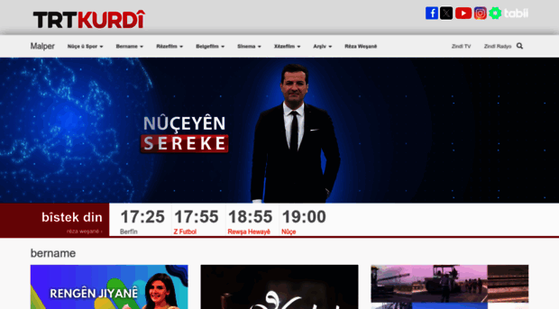 Türkiye'nin zenginliğini ve renklerini ekrana taşıma amacıyla kurulmuştur. Trtkurdî kürtçe hesabı ➡ @trtkurditv. Trt kurdî is the first national television station that broadcasts in kurdish. Trt kurdî canlı radyo yayını trt dinle'de! Trt kurdî is the first national television station that broadcasts in kurdish. Trt kurdî canlı yayınını trthaber.com'da izleyin. Trt kurdi canlı yayınını donmadan ve yüksek kaliteyle internetten online izleyebilir, sevdiğiniz tv programlarını takip edebilirsiniz. Canlı tv yayınını arkadaşlarınızla paylaşarak bu eğlenceye ortak edebilirsiniz. A 2018 survey asking kurds about trt kurdî showed that a majority did not trust the channel.2. Trt kürtçe izle, donmadan hd kalitesinden trt kanallarından trt kürdi canlı yayın izleme sayfasıdır. It broadcasts in the kurmanji and sorani dialects of the kurdish language as. Yukarıdaki trt kurdî tv frekansı 26 haziran 2019 tarihinde güncellenmiştir/eklenmiştir. Trt kurdî is first national kurdish language television station in turkey.